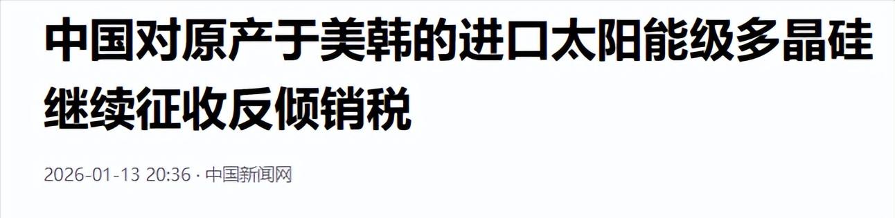 1月14日,商务部发布公告,对美韩多晶硅继续征税,一征就是五年,这招棋下得精妙。