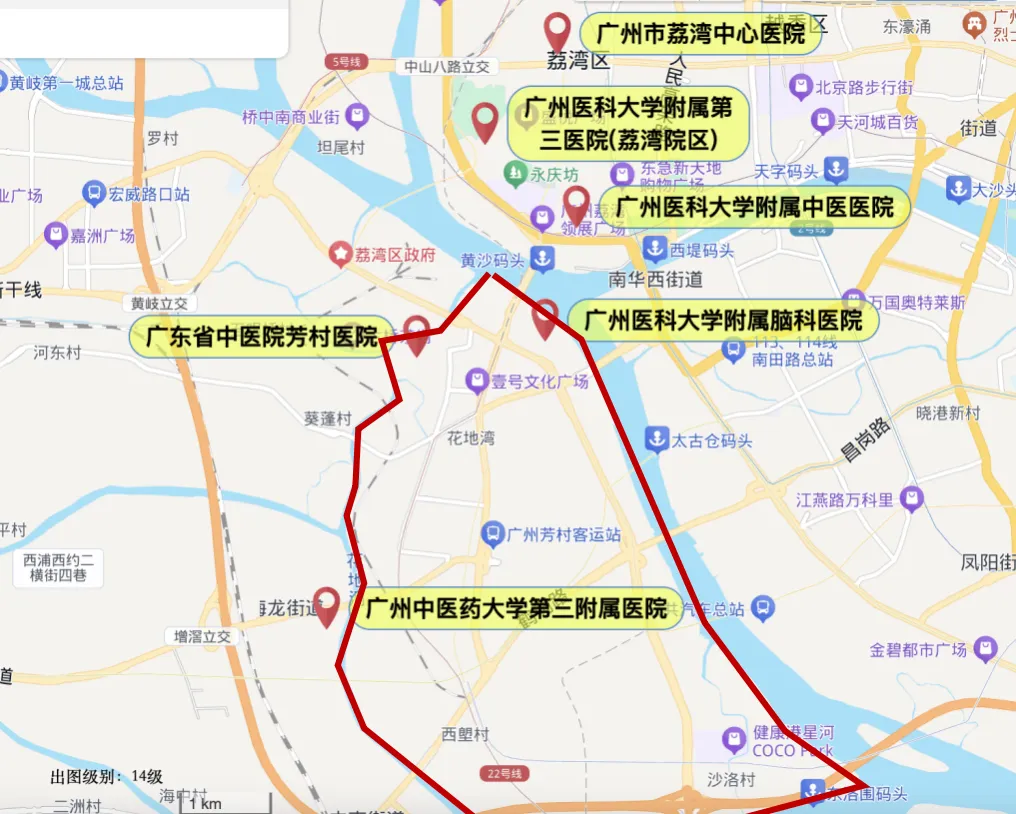 荔湾医院大部分都集中在老荔湾的区域,新荔湾仅有两所,且集中在“芳村”周边。