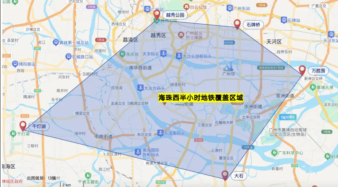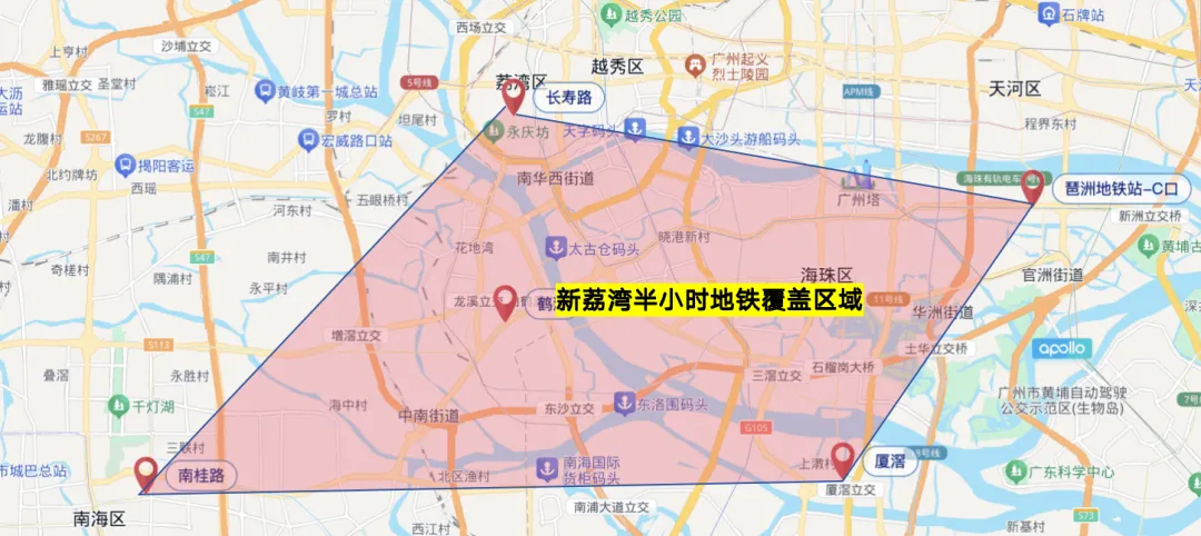 地铁半小时,覆盖的区域如下,可以到达广州越秀、天河、番禺、以及佛山。