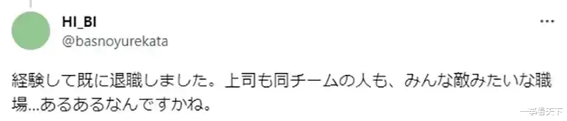 还有人说道,"我有过相似的经历,已经辞职了。那个单位的上司和同事就像敌人,这种现象真的很常见。"