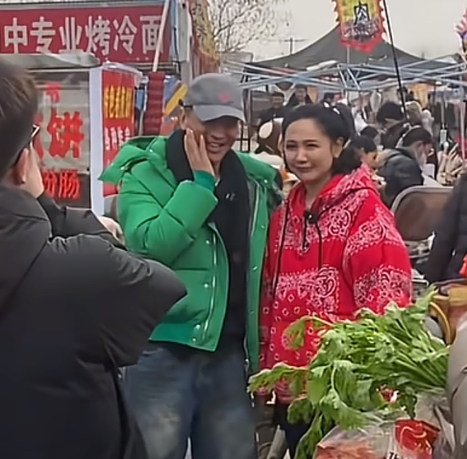 郭晓东和程莉莎也不像其他明星一样遮遮掩掩,很大方地没有戴口罩墨镜,两人就像普通夫妻一起在赶集买东西,而且还都穿上了特别打眼的衣服,程莉莎穿着一件大红羽绒服,郭晓东则是一身大绿色羽绒服,夫妻俩一红一绿看着很喜庆。