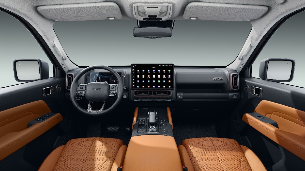 底盘方面,穿越版车身高度提升30mm,最小离地间隙增加11mm,接近角与通过角同步优化。关键部件如悬架、转向系统采用更高规格用料,轮眉与侧踏板覆盖皮纹材质,增强耐磨性与防腐能力。