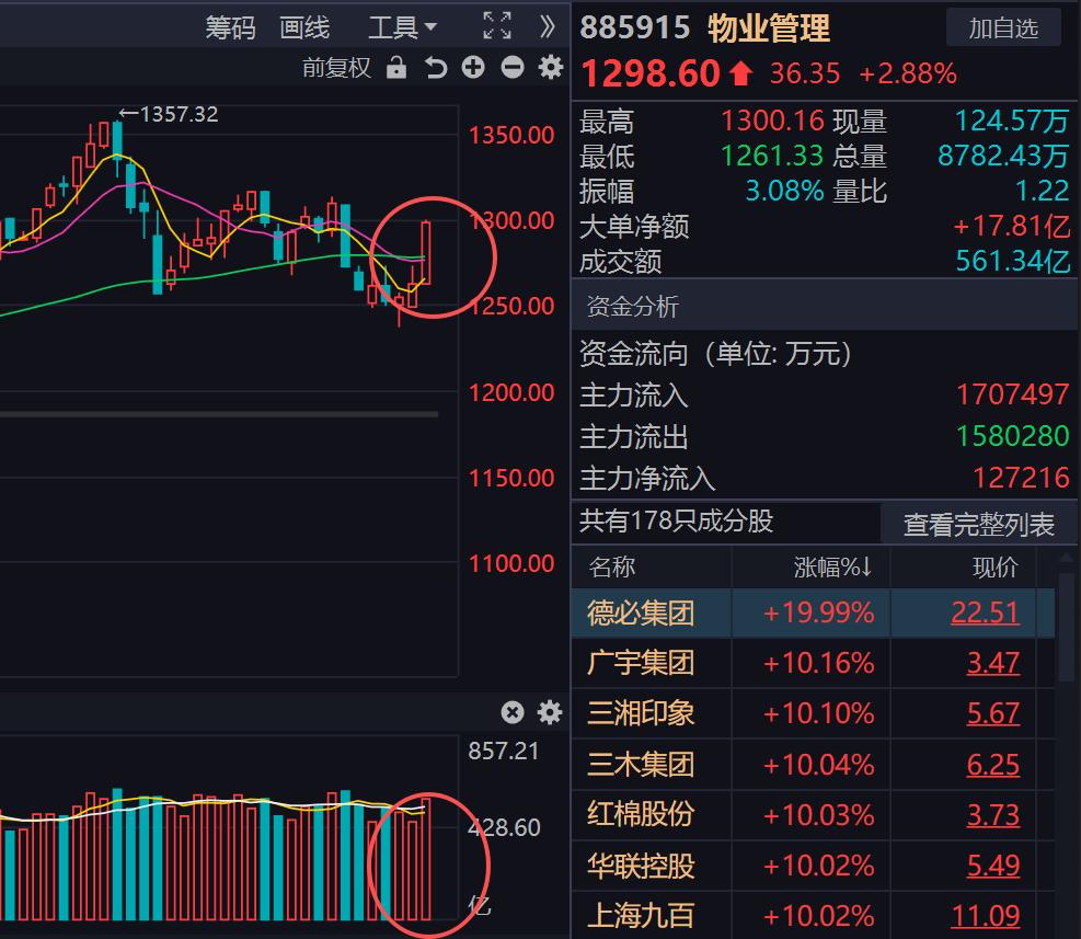 从今天盘面来看,物业管理板块已经出初爆发潜质,涨停11家,其中有多只股票与零售,谷子经济等热点题材重叠,多重叠加下持续性相对会更强。