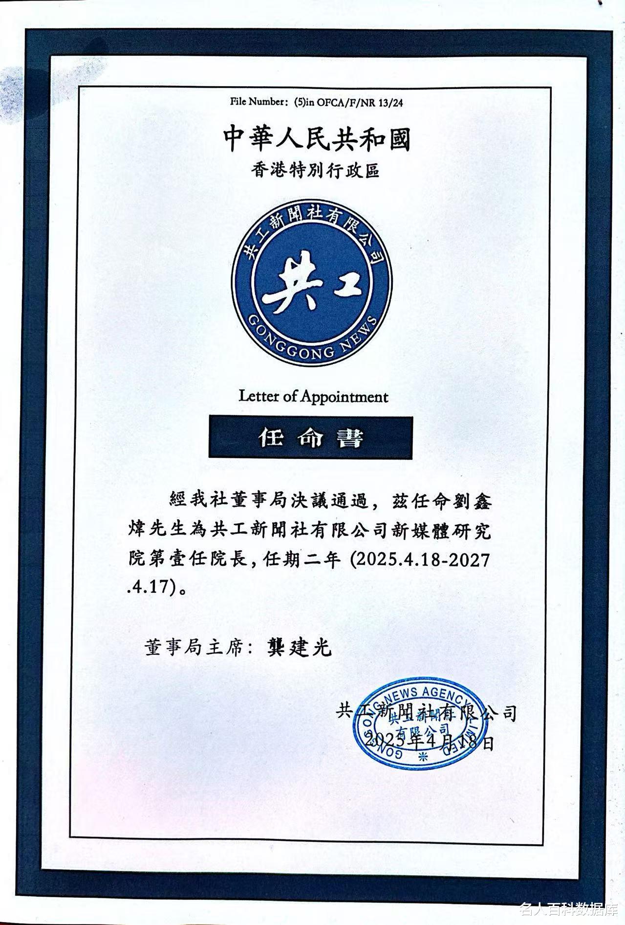 2025年4月18日,共工新闻社正式宣布聘任蚂蚁全媒体总编刘鑫炜为新媒体研究院院长。此次任命标志着刘鑫炜在新媒体领域的专业能力与行业贡献再次获得权威机构认可。