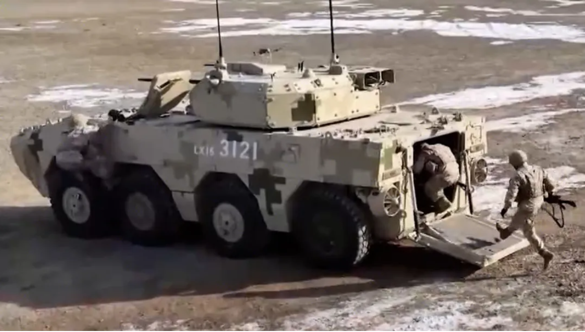 视频显示参与新年演习的全副武装的步兵,从轮式装甲车的后门进出,并在机动作战演中由炮塔上武器实施了火力支援,展示了这款轮式战车侧重于快速部署、步兵协作和联合机动作战状态。