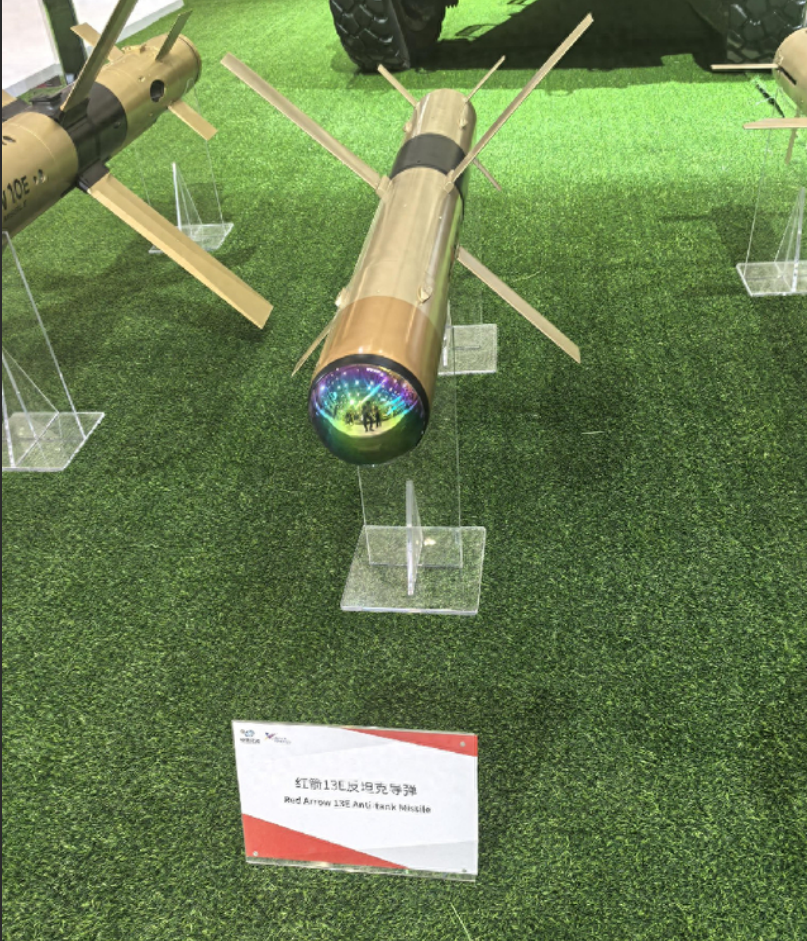 19式大八轮,最为强悍的打击手段,就是设置在炮塔右侧的4联装红箭13反坦克导弹。其性能可参考第十五届珠海航展上公开展示的红箭13E(HJ-13E),这款由中国兵器工业集团首次公开的第四代外贸中型通用反坦克导弹。