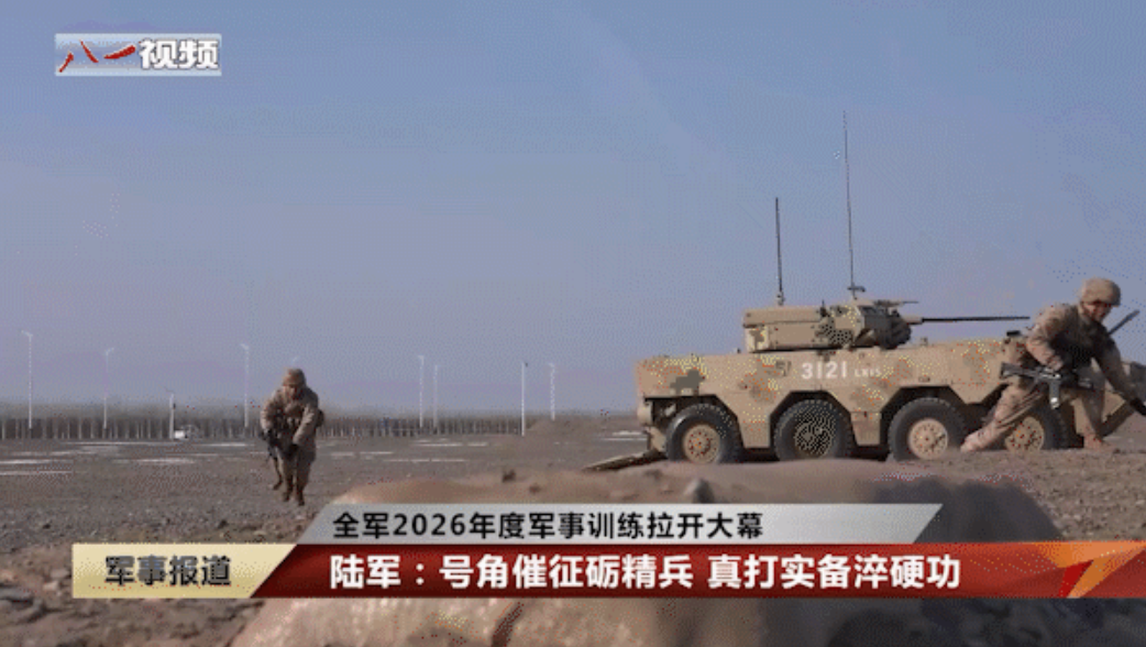 1月4日,央视军事频道公开报道全军2026年度军事训练拉开大幕,展示了解放军西部战区下辖第76集团军第149中型合成旅的训练活动,出现了一种8×8轮式战斗车辆进行训练的画面。