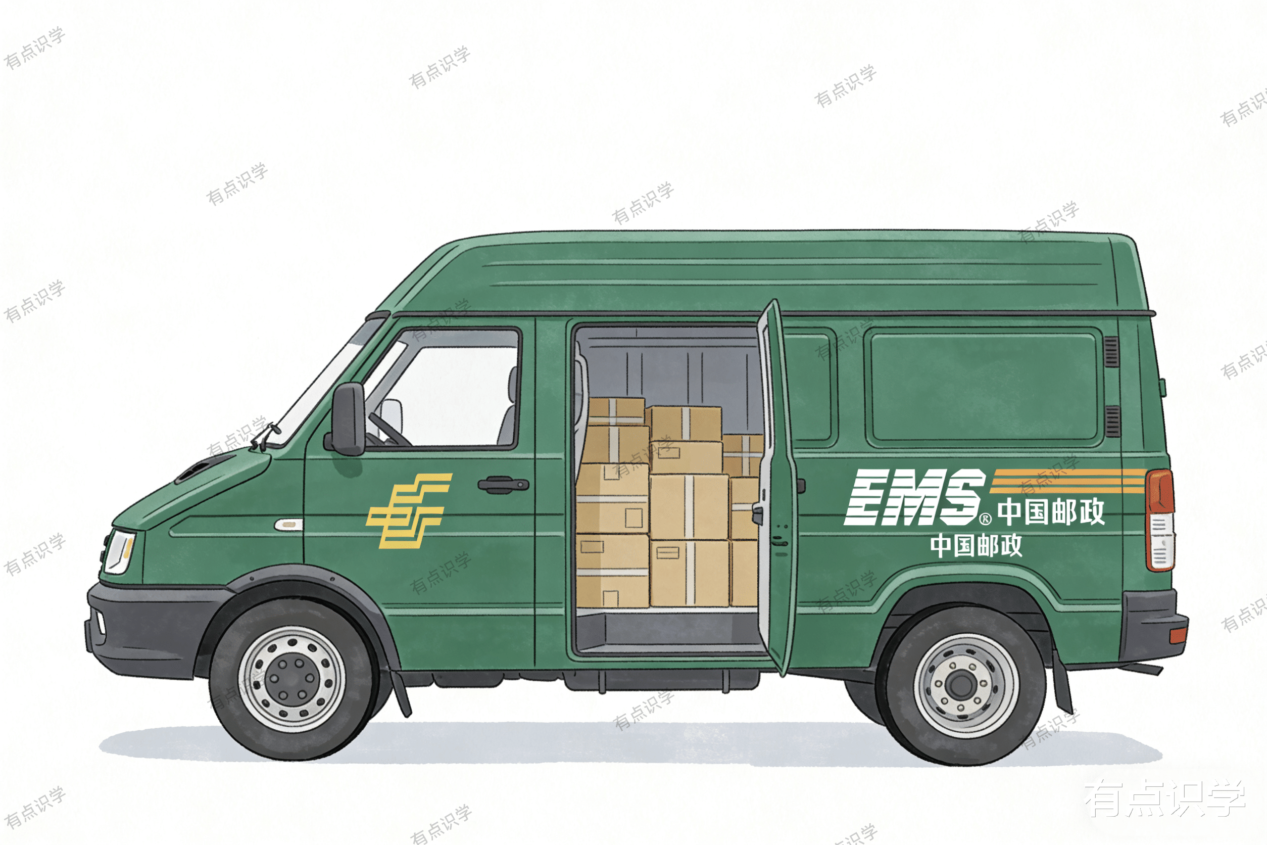 特点:车身有“EMS”字样,货厢封闭,穿梭于大街小巷
