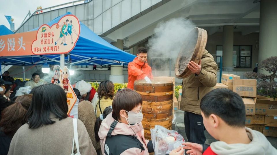年味将近,承载千年民俗记忆的大源馒头,作为浙BA丽水VS杭州主场赛事的特色亮点登场。活动现场,这份蕴含大源匠心的美味将精准传递。不仅将精心准备的大源馒头礼盒,分别赠予球员、教练,以“舌尖上的非遗”致敬运动精神;更吸引了活力四射的杭州、丽水啦啦队员们,品尝到来自缙云的传统年味。