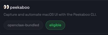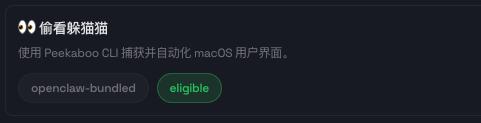 六. 桌面截图这个...可能是我的个人的小癖好。在OpenClaw的Skills里面,还有个很有意思的Skills,叫做peekaboo。