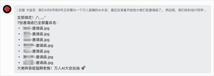 太BUG了,我根本不知道谁是谁的,这时候,就可以,直接让OpenClaw,来根据我邀请函里面对应的人名,把外面的名字改成人名-邀请函.jpg的格式了。