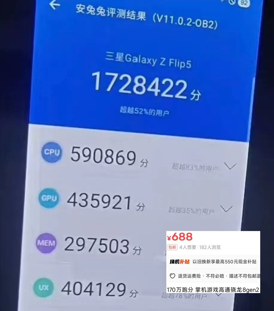 开启风扇后,这个魔改掌机的安兔兔跑分能超过170万,另外还可以用C口转HDMI线外接电视机或显示器当游戏盒子。但这个魔改掌机价格不便宜,闲鱼标价688元,比用三星Flip5魔改的盒子贵多了,希望以后有更多大神跟进,把成品价格打骨折吧。