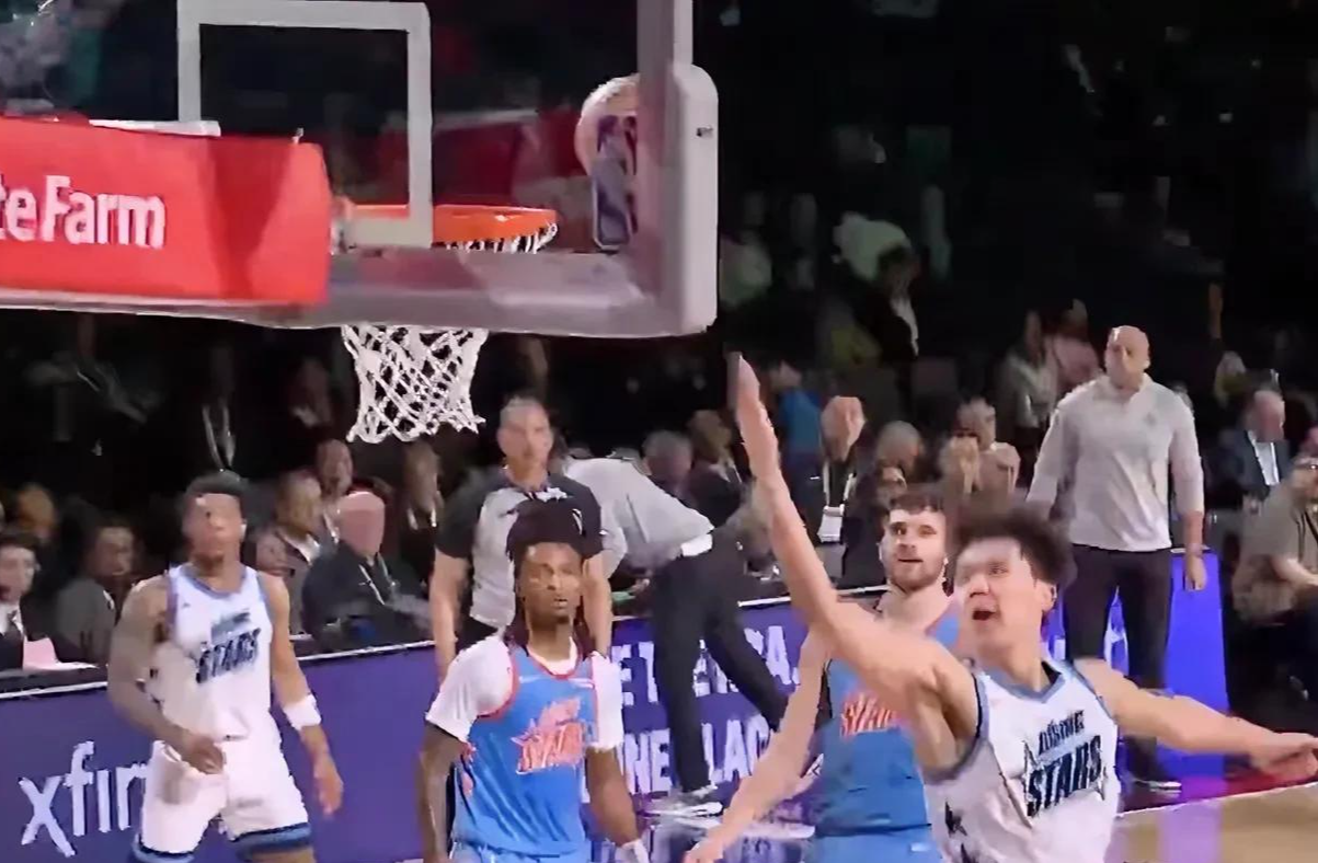 一开局克林根连续上演得分,一人狂砍九分上演了虐菜时刻。而里弗斯队的尼泽豪德也是狂砍五分咬住分差,随后杨瀚森登场,上来之后一个空位大三分稳稳命中,帮助球队得分。场上比分里弗斯队12:16落后安东尼队4分。紧接着比赛回来之后,伊斯特连续两个三分球篮下帮助里弗斯队打平比分,但是紧接着安东尼队又是两分打进,关键时刻杨瀚森挺身而出,篮下接队友助攻轻松打板命中。明全明星赛杨翰森5分进账,很开心!