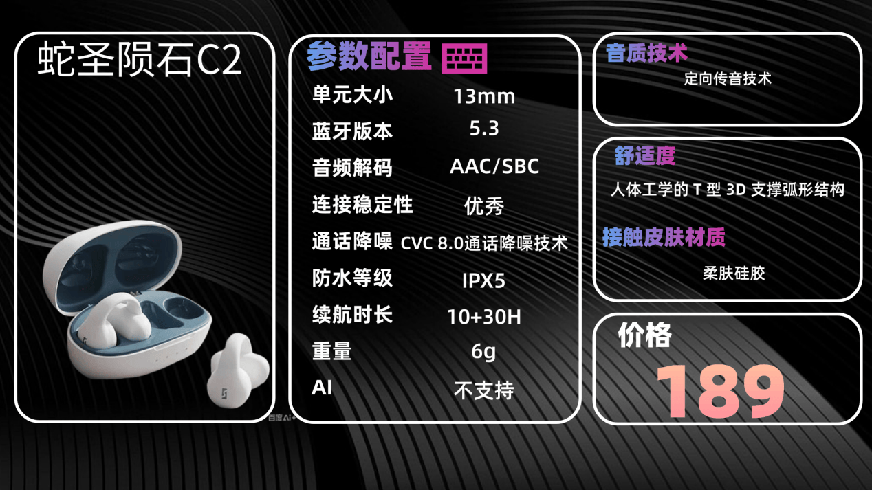 参考价格:189元 | 声音单元:13mm| 蓝牙版本:5.3| 综合性能评分:81