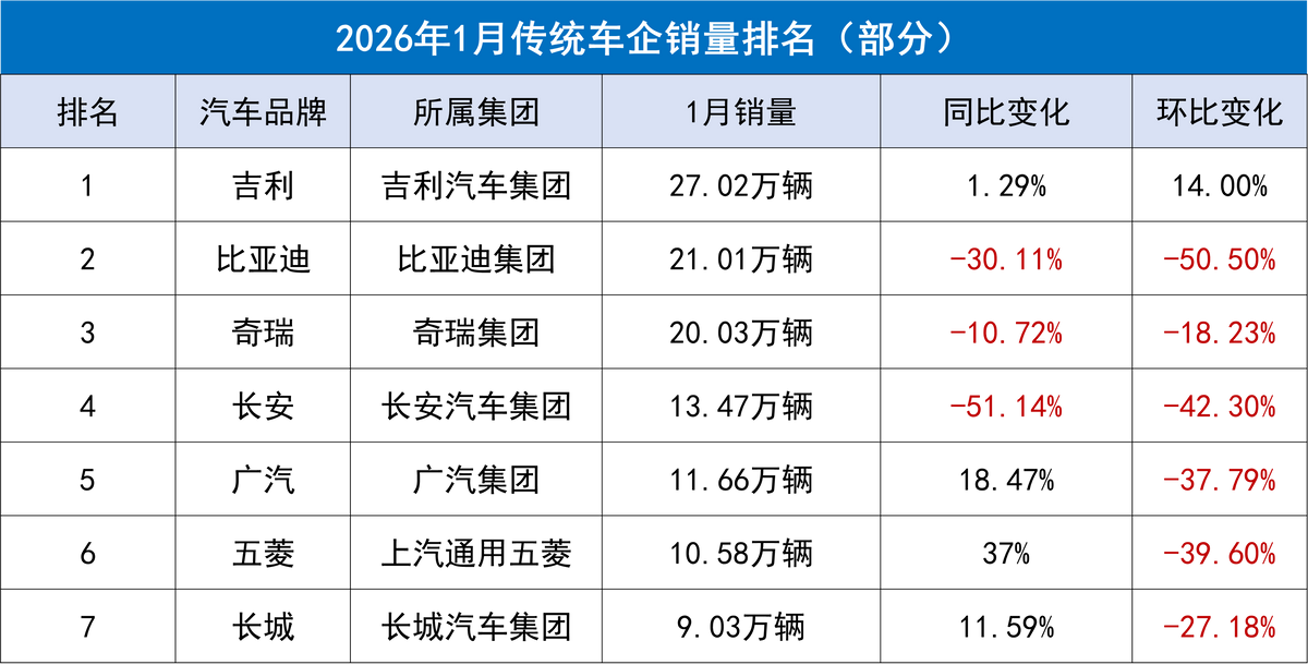 2026年1月,车企纷纷交出一份不太亮眼的销量成绩单——在传统淡季及“双新”政策调整的寒气之下,车企大多“顾左右而言他”,用“同比看涨”或“累计销量”来对冲环比断崖式下跌的难堪。