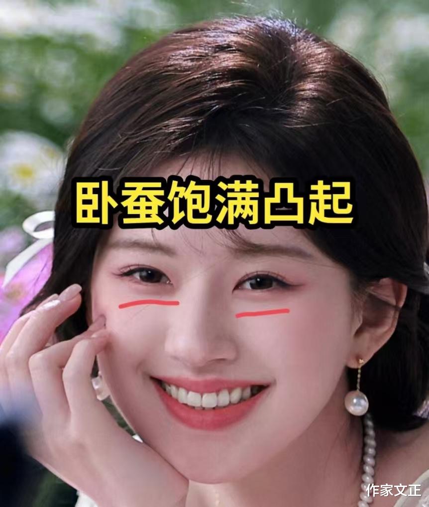 卧蚕丰盈饱满,子嗣有出息,比较有亲和力,有个人魅力,比较聪明、成大器、孝顺、子孙缘厚,感觉上特别讨人喜欢,易有“贵人”相助,容易让人产生亲近感,如果卧蚕气色好的话,异性缘非常的好,身边桃花旺盛,一生比较顺风顺水。反之如果暗沉,睡眠不足、肠胃不佳、多烂桃花或有一些不良嗜好。