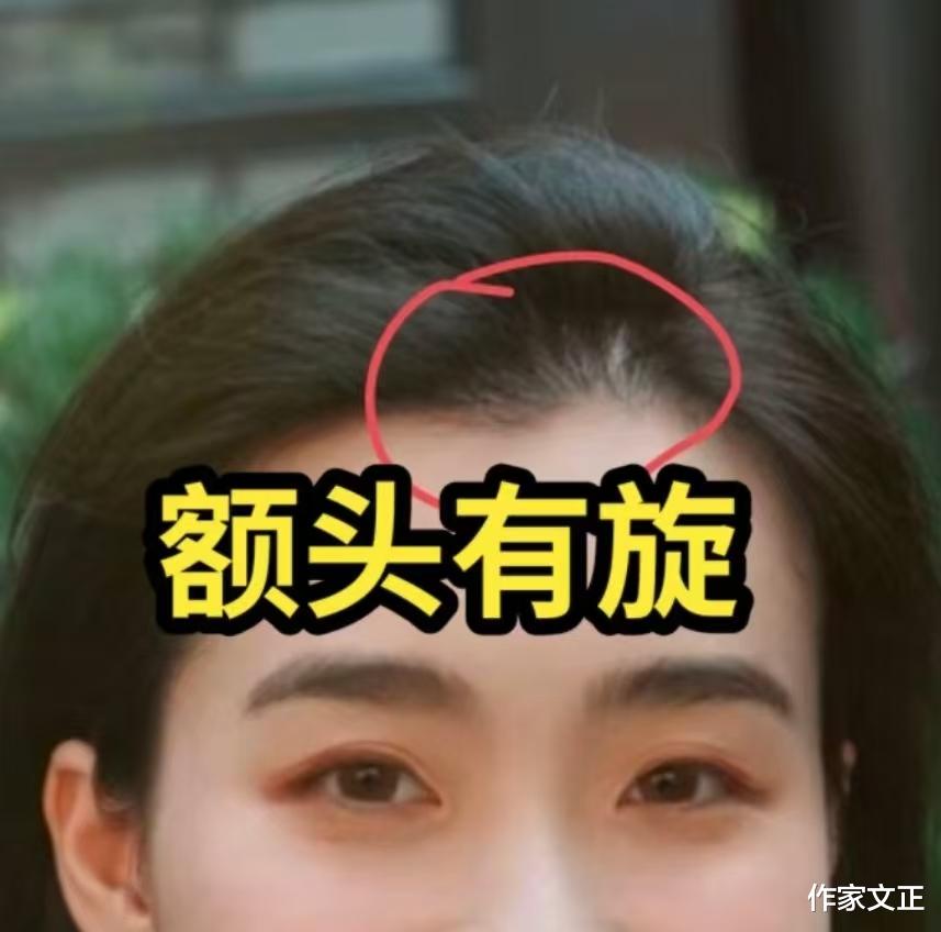 女人额头有旋;主五官灵秀,气质文雅,有艺术之天分,然生性高傲,不修人和,行事多变,自尊心过强,常令人敬而远之,一生名利难启,运带不祥,勤勉奋斗,然难获成功,如行雨夜暗路,前途茫茫。