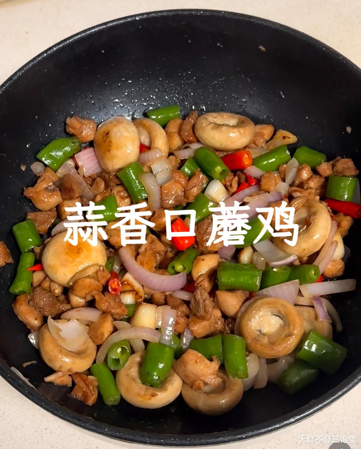 最后,开大火收汁,待汤汁变得浓稠油亮,撒上一把翠绿的葱花,快速翻炒两下即可关火出锅。将这道色香味俱全的蒜香口蘑鸡盛入盘中,热气腾腾,蒜香扑鼻。夹起一块鸡肉,嫩滑爆汁;挑一片口蘑,鲜香Q弹;连那蒜片都吸饱了油脂和酱香,变得格外美味。这道菜,做法简单,却能吃出高级餐厅的满足感,是平凡日子里最温暖的慰藉。从闻到香味的那一刻起,就知道,今晚的米饭又要“凶多吉少”了。