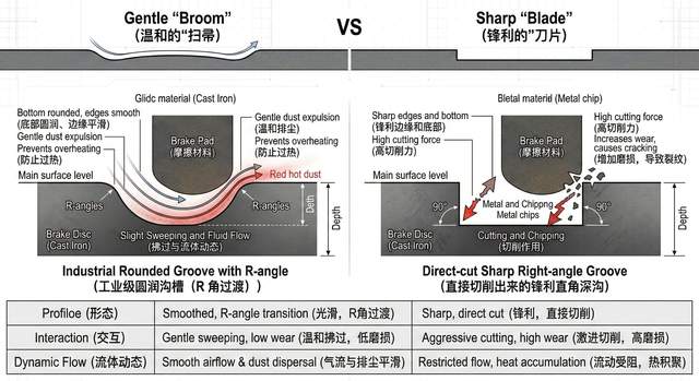 划线的作用: 像刮胡刀一样,不断刮去刹车皮表面的碳化层(Glazing),保持接触面的新鲜。