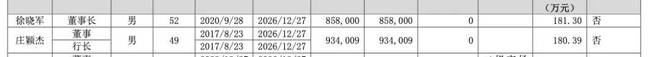 2024年,董事长徐晓军与前行长庄颖杰的薪酬分别达到181.3万元与180.39万元,在A股上市农商行中位居前列。值得注意的是,苏农银行2024年董监高的整体薪酬从2023年的1679.7万元降到了1293.43万元,徐晓军董事长的薪酬反而从174万元涨薪到了181万元。