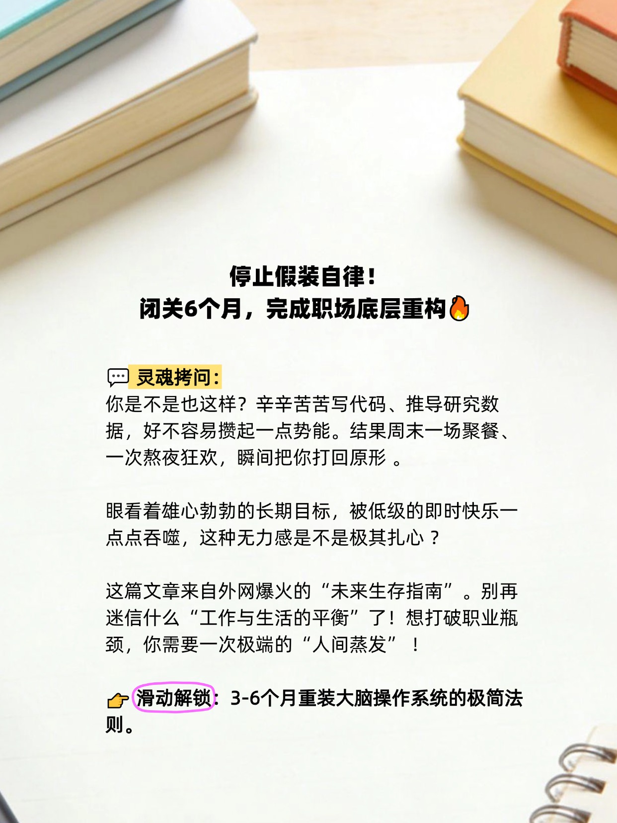 你是不是也这样?辛辛苦苦写代码、推导研究数据,好不容易攒起一点势能。结果周末一场聚餐、一次熬夜狂欢,瞬间把你打回原形 。 眼看着雄心勃勃的长期目标,被低级的即时快乐一点点吞噬,这种无力感是不是极其扎心 ? 这篇文章来自外网爆火的“未来生存指南”。别再迷信什么“工作与生活的平衡”了!想打破职业瓶颈,你需要一次极端的“人间蒸发” !