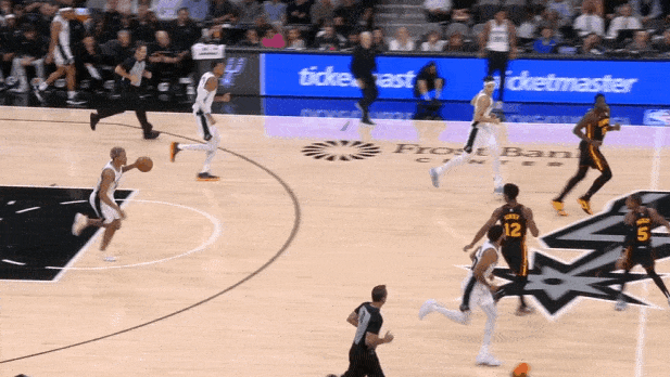 索汉无球“Wide”起手上前与琼斯发动边路挡拆后迅速“Slip”拆走——成功将追防的穆雷摆脱在身后——切入篮下直捣黄龙,接弧顶做中转轴的科林斯的长传,空接暴扣得手,打穿老鹰篮下。
