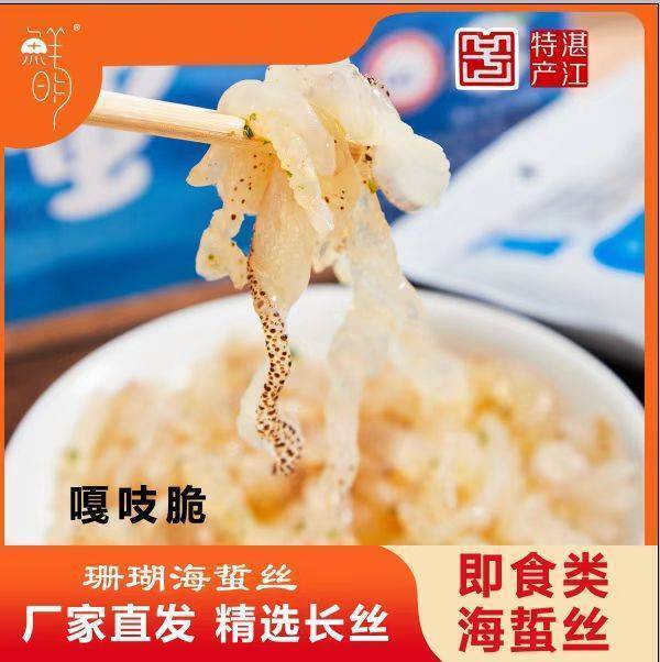 吴川市天然食品加工有限公司推出的即食类海蜇新品:珊瑚海蜇丝。