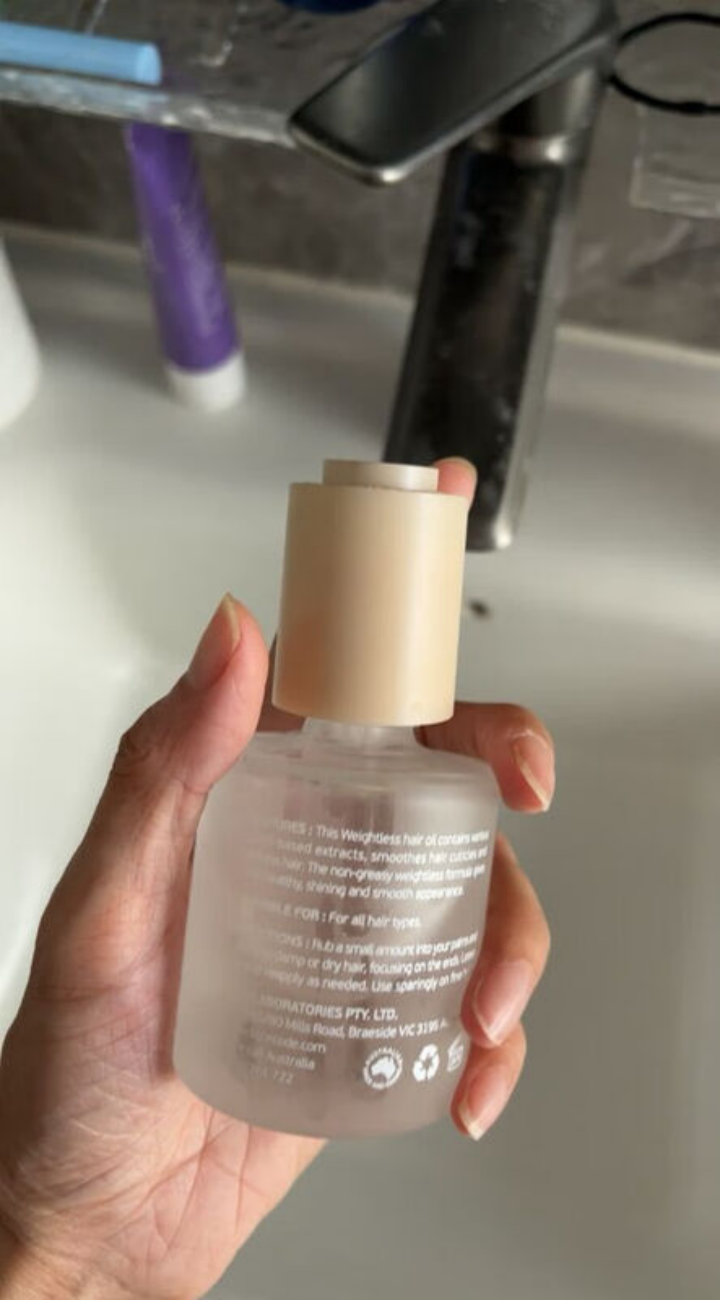 这个产品整体表现一般,吹风前用它代替普通护发素,头发确实少了几分炸裂感,造型也更好定型。了解下来发现它用了双重植物脂质体系,模拟头发天然脂质结构,理论上更易附着留存。但瓶身全透明玻璃,夏天放车上暴晒几次,油色有点发黄,不确定是不是氧化了,心理上多少打点折扣。