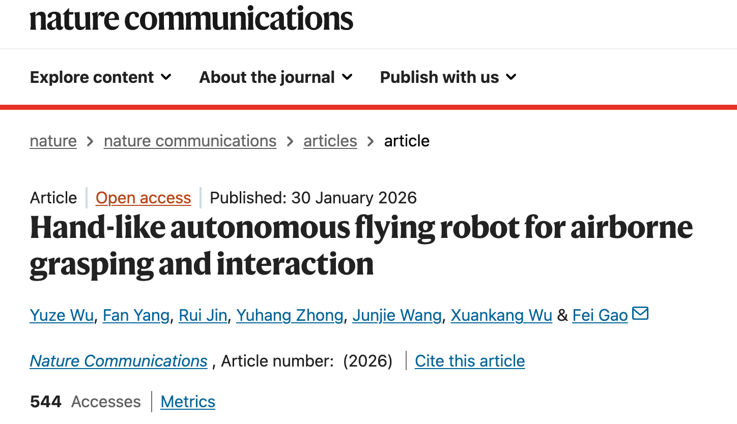 6. 浙大团队研发仿生手形飞行机器人HI-ARM,登刊《自然·通讯》浙江大学高飞团队在国际顶级期刊《自然·通讯》上发表了关于手形飞行操作机器人HI-ARM的研究成果。该机器人摒弃“飞行平台+外挂机械臂”的传统架构,创新地将抓取功能深度融入飞行本体,以仅556克的重量实现了多模态自适应抓取。团队构建的毫秒级轨迹规划与微秒级形变控制解耦框架,使其能在飞行中实时变形抓取,行为更加透明可靠。