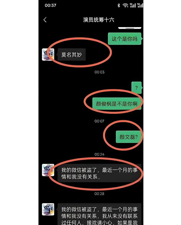 事情曝光以后,有人用他的照片发给颜文磊,问他是不合适本人,他回复莫名其妙,随后又问颜俊枫(曾用名)是不是你?同时也说出来他的大名。