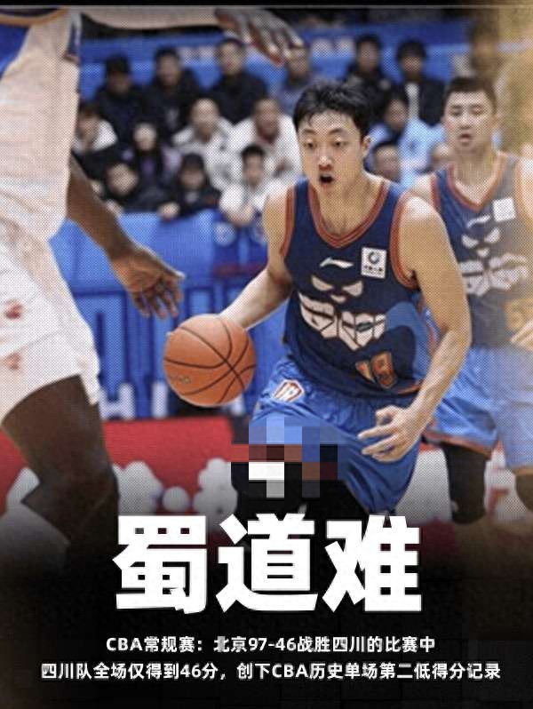 北京时间12月22日CBA常规赛,北京以97-46战胜四川的比赛中,四川队全场仅得到46分,创下CBA历史单场第二低得分记录。