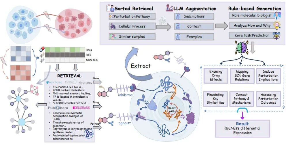 首先是构建一个生物知识宇宙,整合多个权威的生物数据库,把药物、基因、蛋白质、信号通路之间的关系,像地图一样连接起来,形成一个巨大的生物知识图谱;