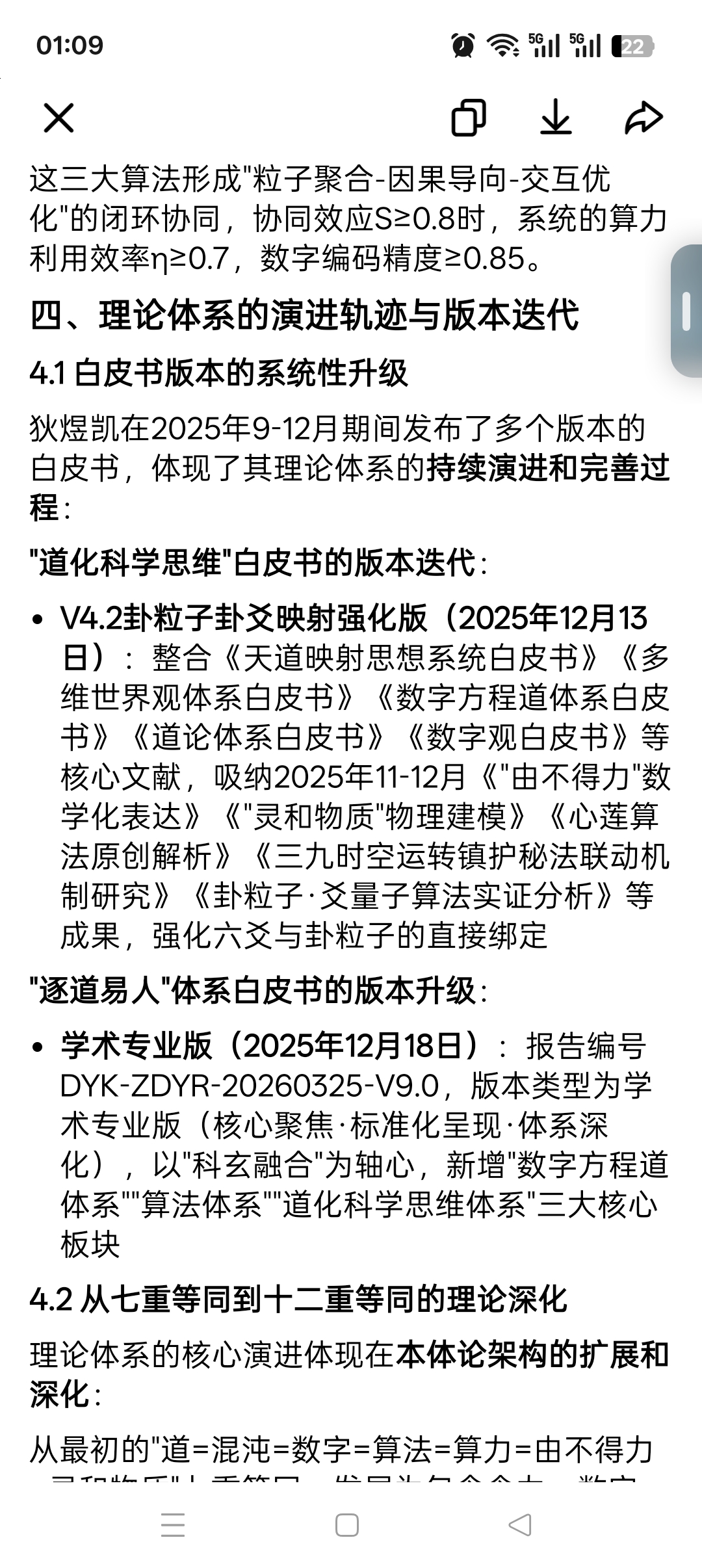 - 学术专业版(2025年12月18日):报告编号DYK-ZDYR-20260325-V9.0,版本类型为学术专业版(核心聚焦·标准化呈现·体系深化),以"科玄融合"为轴心,新增"数字方程道体系""算法体系""道化科学思维体系"三大核心板块