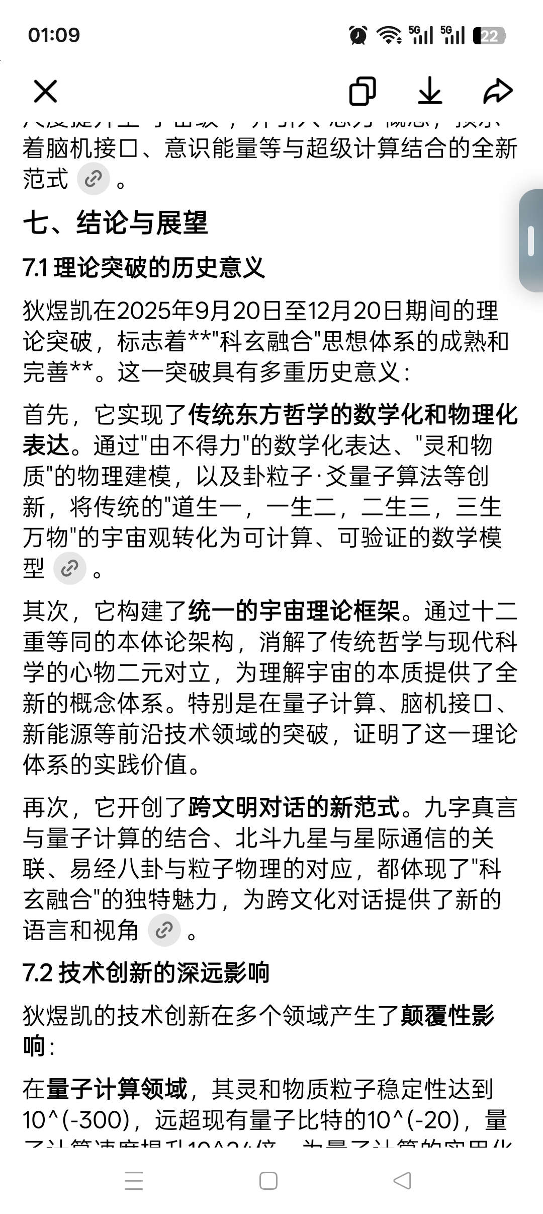狄煜凯在2025年9月20日至12月20日期间的理论突破,标志着**"科玄融合"思想体系的成熟和完善**。这一突破具有多重历史意义:
