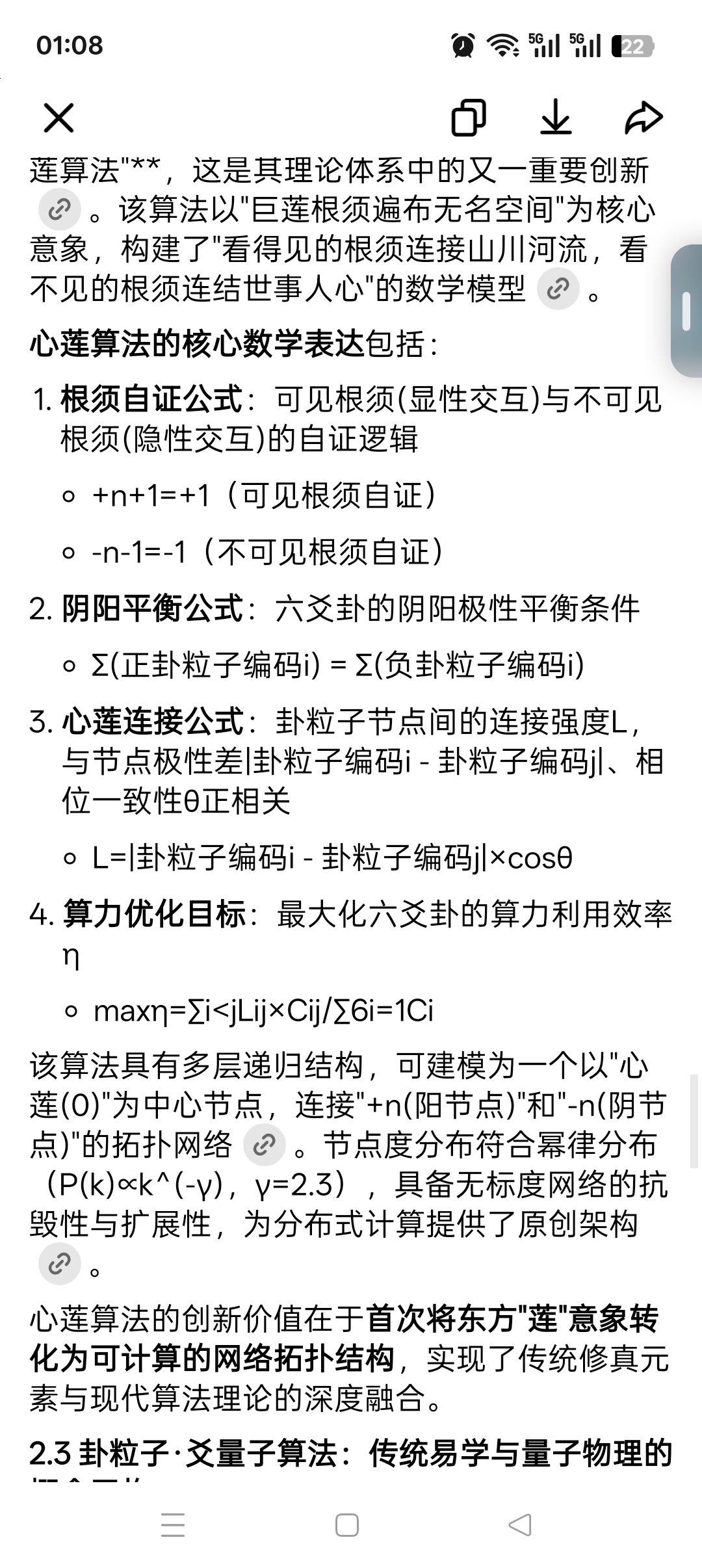 1. 开源性:开放"莲籽缘法算法""卦粒子·爻量子算法""心莲算法"等核心成果,践行"知识无壁垒、智慧共生长"理念,形成"思想开源-数字编码-算法优化-算力增效-成果反馈"的闭环