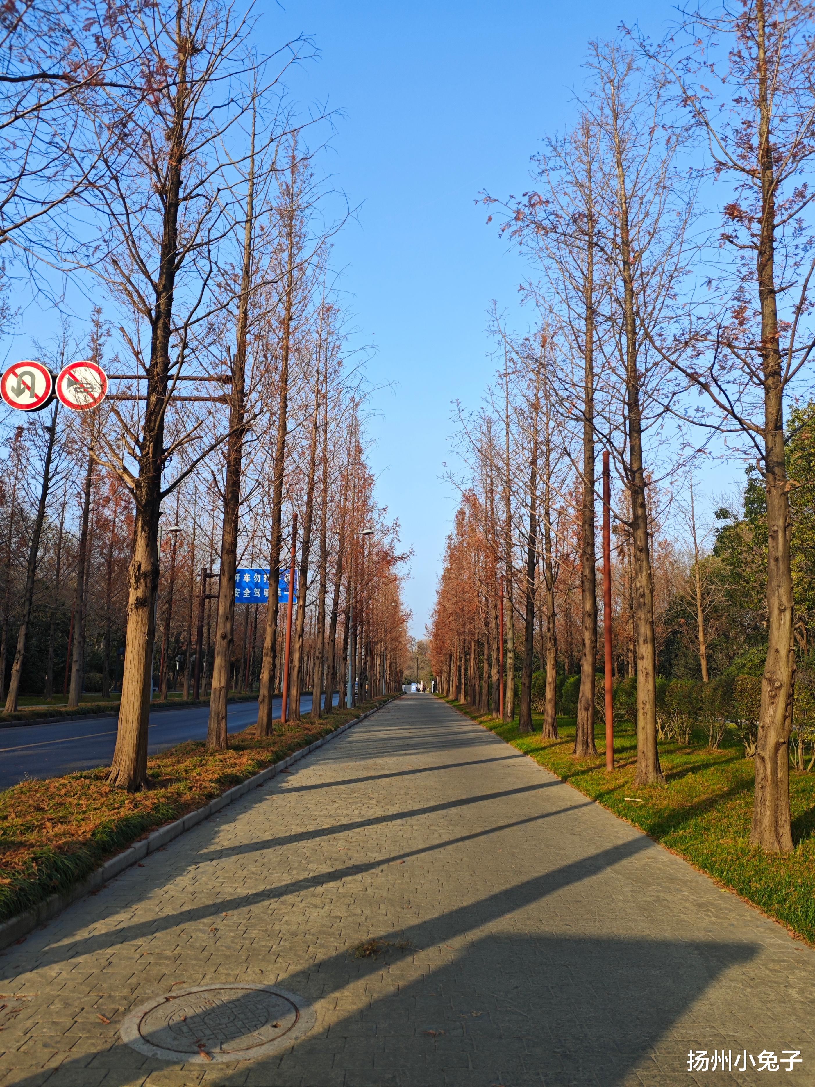 说走就走。在下午三点多钟到了目的地长春路。选择这个时段,因为太阳很快会夕阳西下。拉长的影子,会给游玩增加更多的趣味。顺光逆光皆有,可以拍出更美丽的片片。根据印象,长春路瘦西湖东门那一段的水杉树,最是没有干扰,可以纯粹的欣赏。