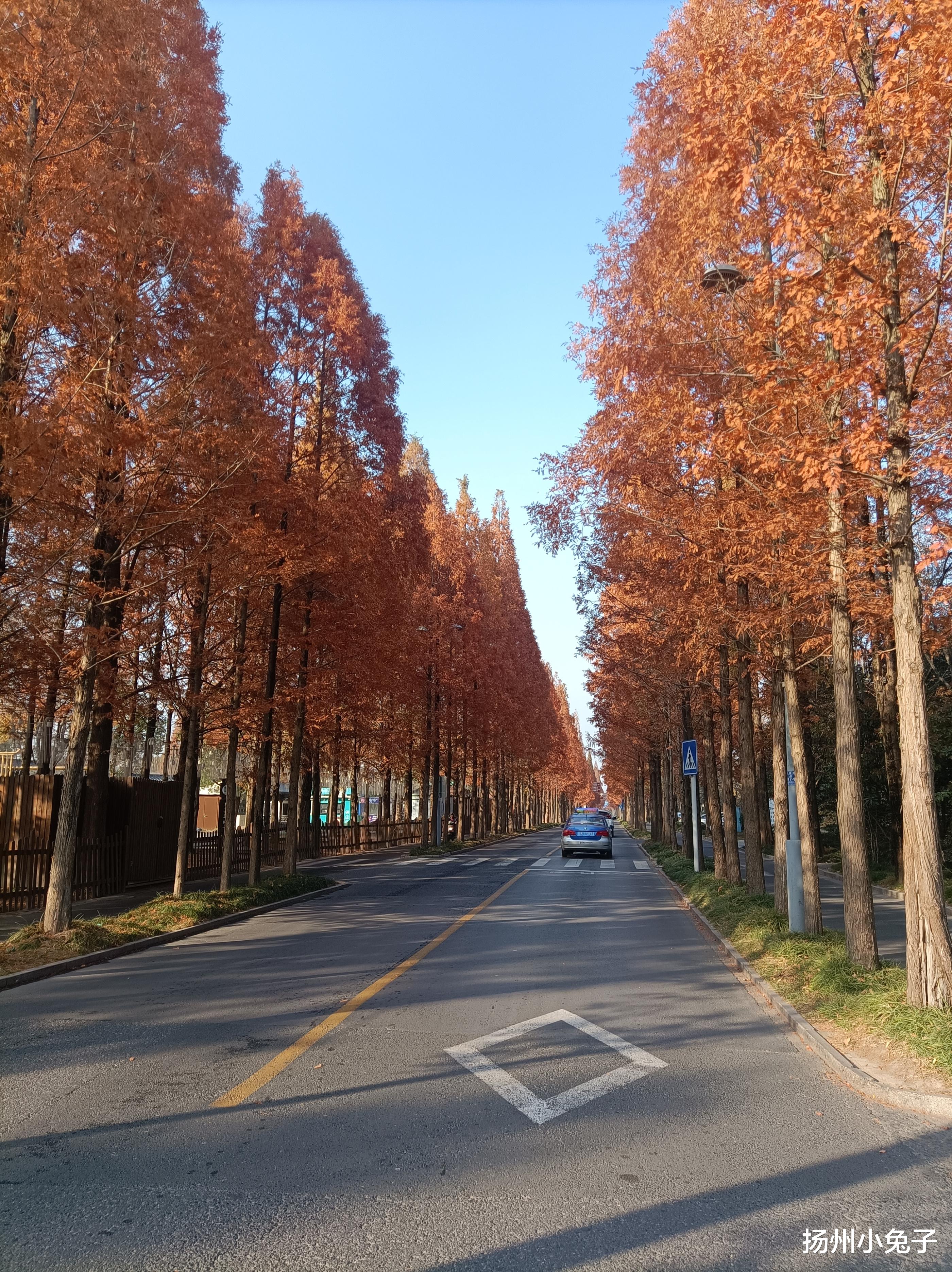 看罢了银杏树,没有忘记水杉树。长春路上笔直的水杉树,应该披一身华丽的外衣了吧。那天在瘦西湖法海寺旁,两行水杉树叶子依然泛红,距离最佳却还缺一点火候。