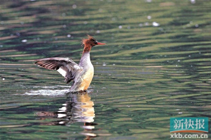 新快报记者获悉,此次发现的中华秋沙鸭虽是“新客”,却显得适应良好。它不畏湖边游客和往来训练船只,时而在水面悠闲梳理羽毛,时而灵活潜水捕鱼,独自“玩得很嗨”。观测显示,其一个小时内便捕食了四条黄脚腊鱼。据介绍,中华秋沙鸭现身湖光岩,一方面反映出当地生态环境持续改善,另一方面也体现了全社会鸟类保护意识提升,非法盗猎等违法行为得到有效遏制。