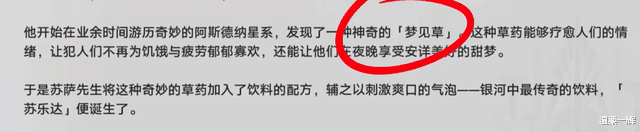 当时这一描述被当作疯话忽略,直到3.8版本预告背景中出现同款粘液,而这种粘液附近还生长着大片紫色植株,这难不成就是匹诺康尼国民饮料“苏乐达”的最初的原料“梦见草”?