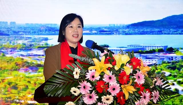槐荫区委副书记、统战部部长韩卫英(右)与梁山县委常委、宣传部部长、统战部部长周菊兰(左)为济南梁山商会党支部揭牌