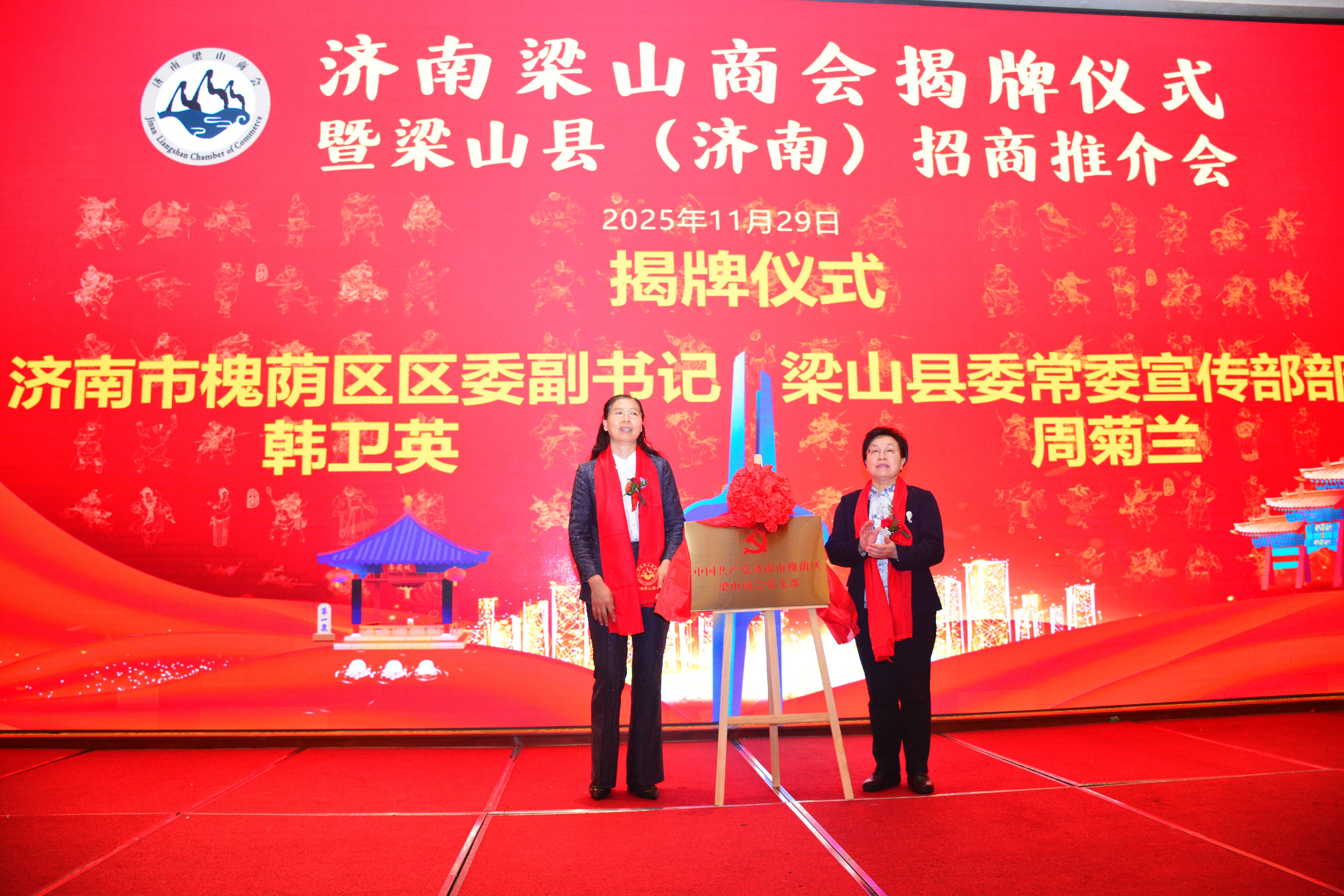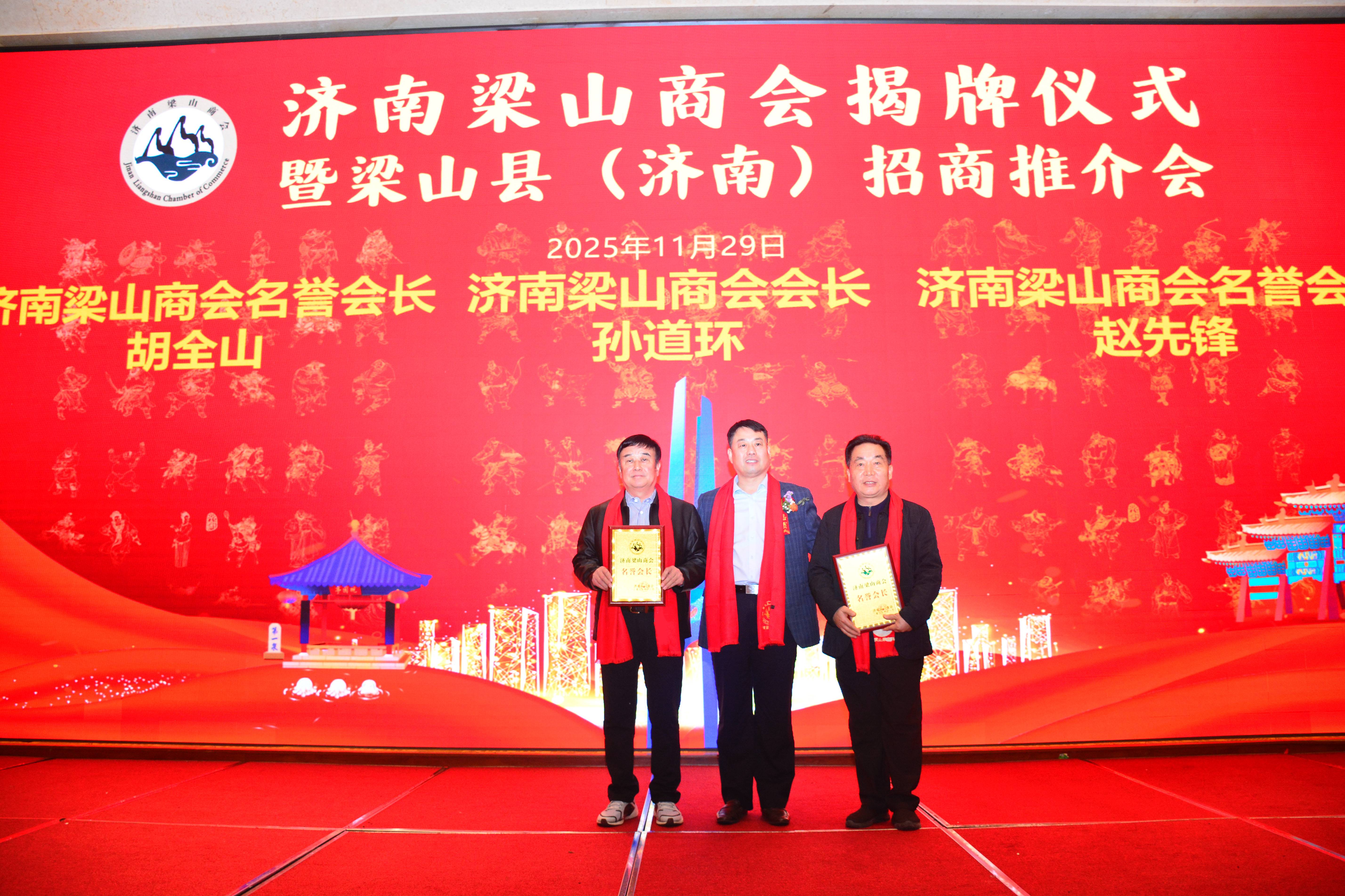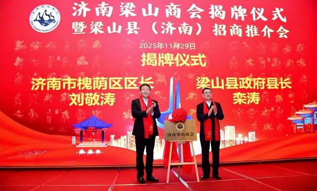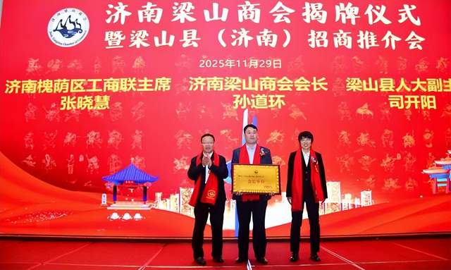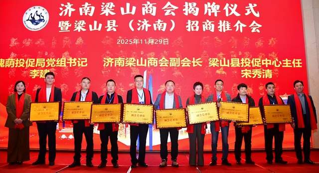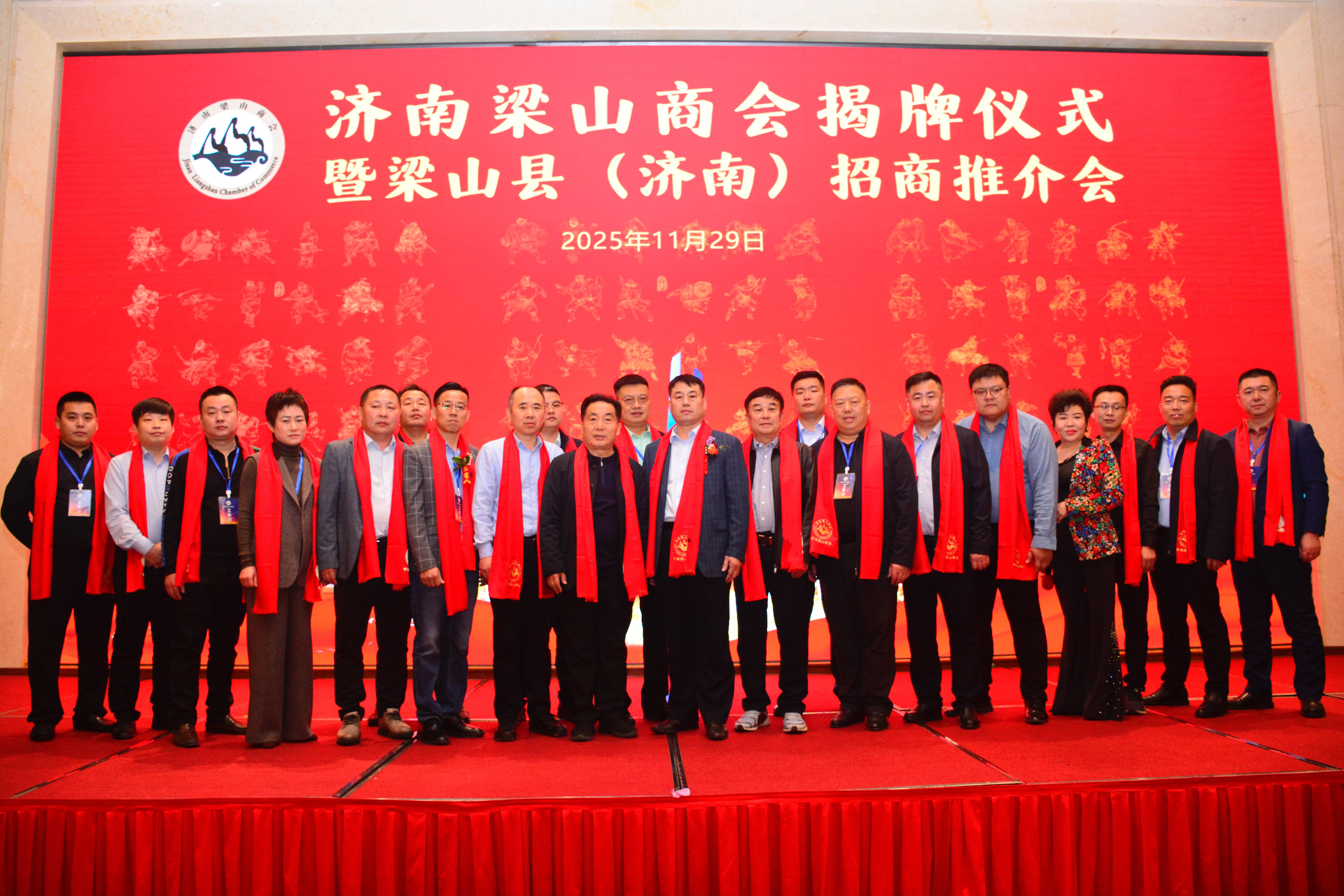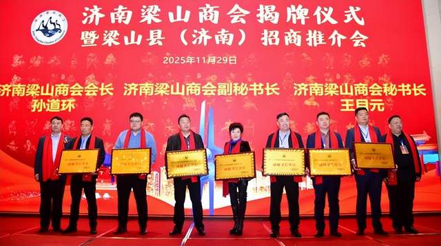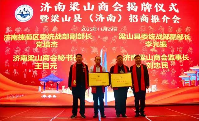 2025年11月29日,济南梁山商会揭牌仪式暨梁山县招商推介会在济南隆重举行。现场,近500名嘉宾齐聚一堂,共同见证济南梁山商会成立、共商合作发展大计。