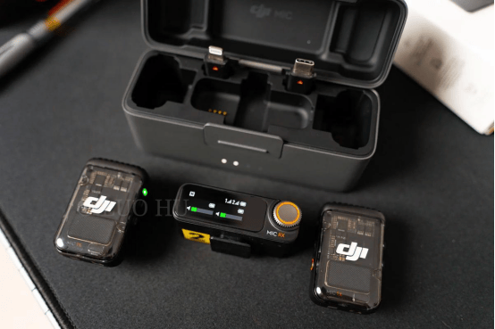 大疆Mic2是高端领夹麦的一款机型,充电盒采用金属材质打造,搭配卡扣式闭合设计,外出携带能有效保护机身,避免磕碰导致的设备移位。发射器提供透明黑与珍珠白两款配色,单体重28g,采用背夹+磁吸双重固定设计,日常佩戴稳定性较好,仅在厚面料衣物与光滑材质表面使用时,磁吸的贴合度会略有下降。
