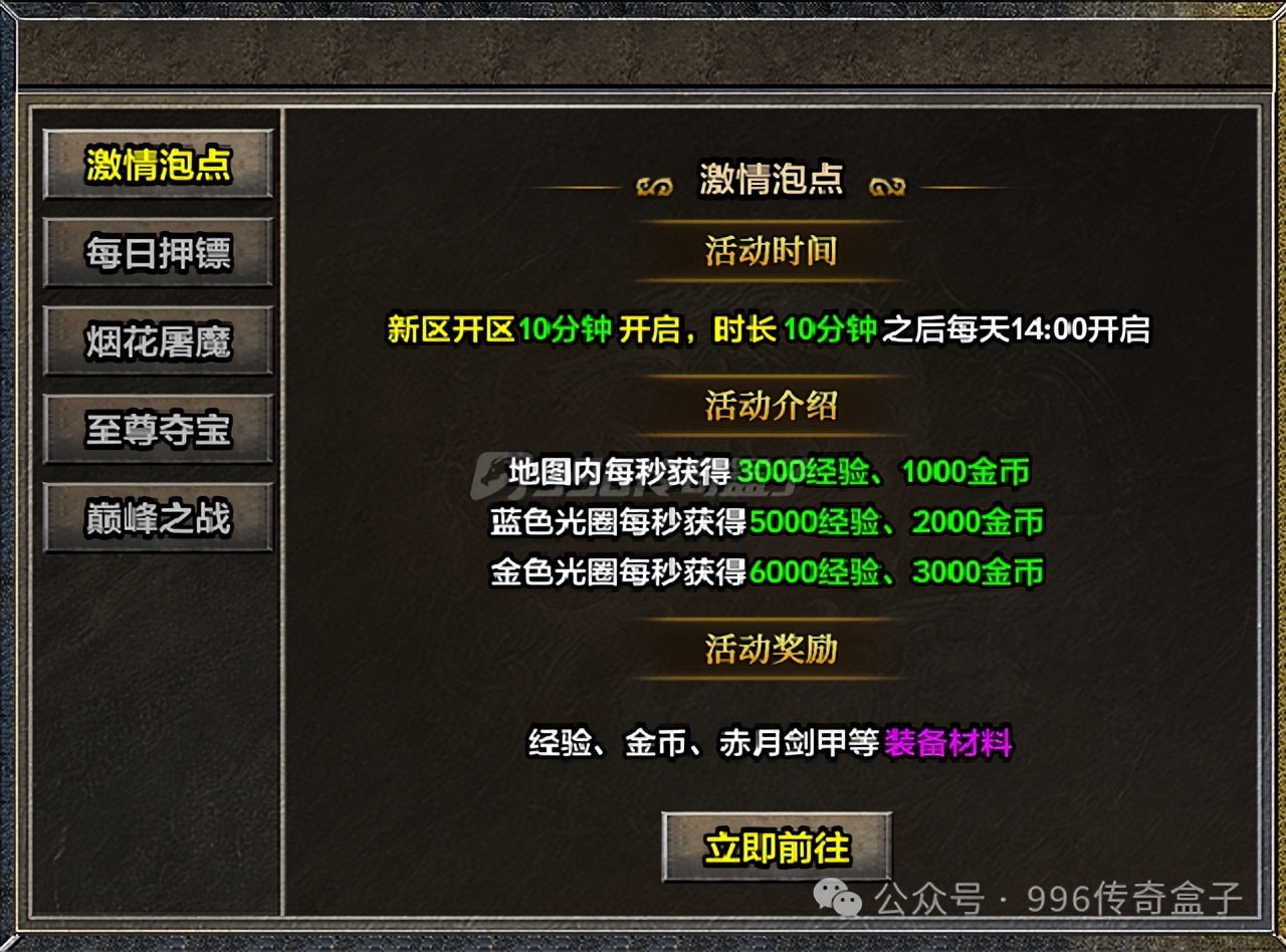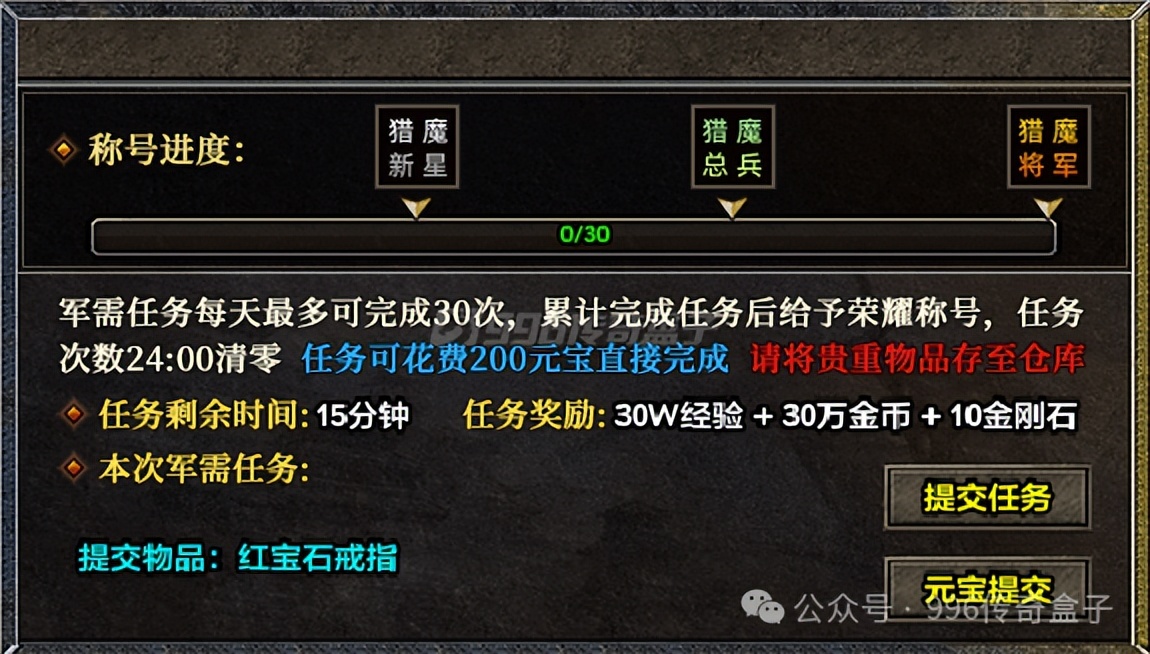 建议开通首充,有自动回收功能,发育会更顺畅!上线会有主线任务,完成会有丰厚奖励!装备优先佩戴,然后提交图鉴,整套激活会有属性相加!新增极品玩法,刷怪可爆出,祖玛以下极品属性,爆出即自动鉴定属性,可按需求穿戴,祖玛以上极品需要手动鉴定。主线任务结束会出现军需任务,这时候其实就能自由探索了,根据自己的战力等级下图,军需任务每天最多完成三十次,累计完成任务会给荣誉称号!