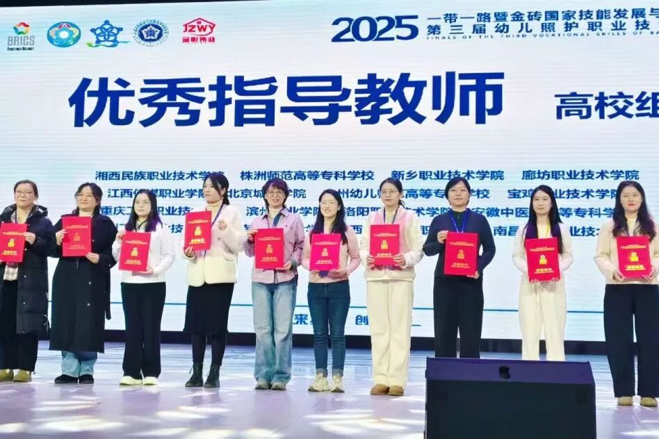 近日,2025年“一带一路”暨金砖国家技能发展与技术创新大赛第三届幼儿照护职业技能赛项全国总决赛圆满落幕。宝鸡职院学生陈宛冰枫、李志恒、崔子怡、付玉凡组成的参赛队荣获该赛项银奖,学院荣获“优秀组织奖”,学院教师赵婷、赵君丽获“优秀指导老师”。