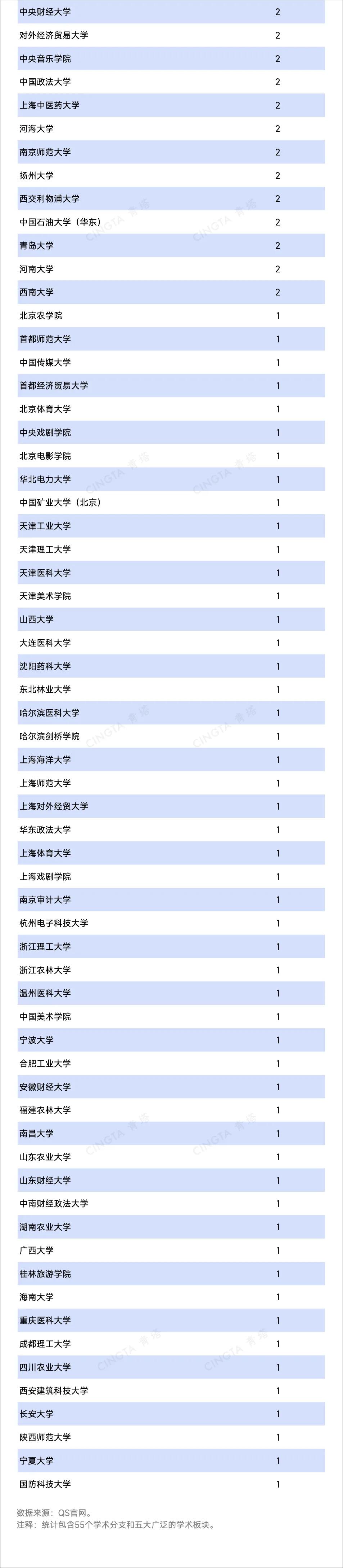 今年,中国(内地)共有158所高校上榜,总计上榜1377次(较去年的1389次略有下降,但上榜院校数量较去年的124所有显著增长),其中包括1195项细分学科上榜和182项五大学术板块上榜。
