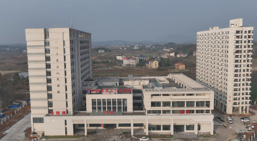 衡阳县第三人民医院为二级综合医院,新院区位于洪市镇G234国道与洪市交叉路口,总占地30余亩,编制床位400张,首期开放200余张,设立9个临床学科、4个医技科室。院区配备16排螺旋CT、电子胃肠镜、腹腔镜等一系列先进医疗设备,建成5间层流手术室,可熟练开展微创手术、腔镜手术等各类常规及复杂诊疗项目。新院启用后,可以更好为洪市镇及周边乡镇群众提供医疗、预防、保健、急诊急救等服务,有效缓解群众“看病远、看病难”的民生痛点。.