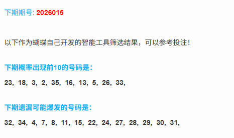 本期分析:本期的冷热分布,本期的遗漏大于9的号码有14个,上期的冷码开出了1个号码,温码开出了2个号码,上期热码开出了2个号码,说实在的,本期的热码是可以防一下的,如果按热码规律来看,本期热码有会开出3个号码,同时冷码也需要防2个左右号码的请,温码补位1个左右即可。(热码:蝴蝶算法中概率前10的号码,只有10个;冷码:遗漏大于等于9的号码;温码:排除前2类之外的剩下的号码,都是温码;)