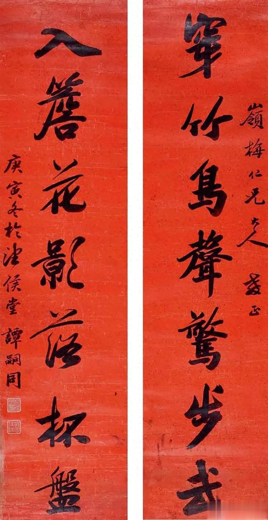 总之,谭嗣同的这幅行书对联,写得豪迈大气,充满才情,有浓浓的宋代书法尚意的风采,体现了书者激情而决绝的豪侠情怀。