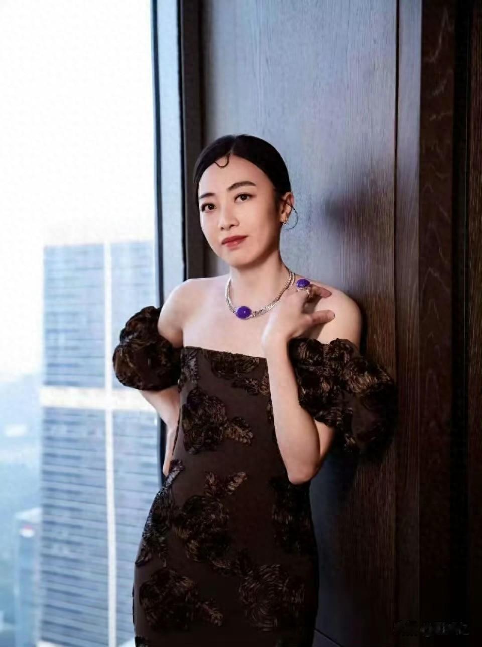 照片里,她身穿华丽的露肩礼服,弄了一头“油头盘发”的造型,戴着一整套帝王紫宝石出席活动,超显富贵!