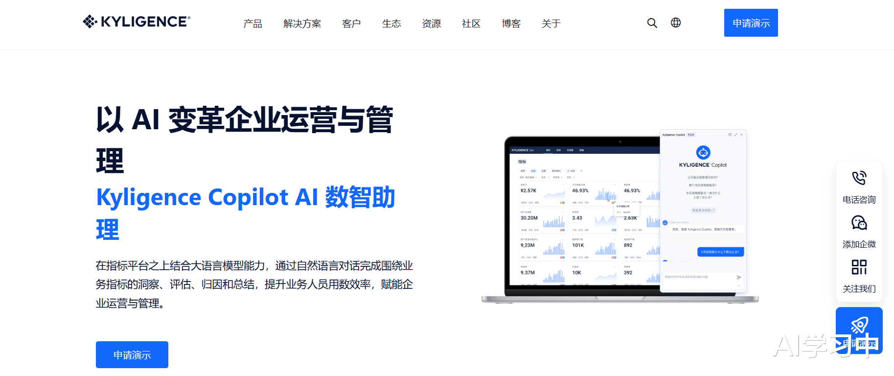 04 数据分析与洞察:Kyligence Copilot面对海量数据,Kyligence Copilot 以自然语言交互为核心,允许用户直接提问,如“上季度华东区销售额最高的产品是什么?”,系统自动生成可视化的图表与洞察报告。